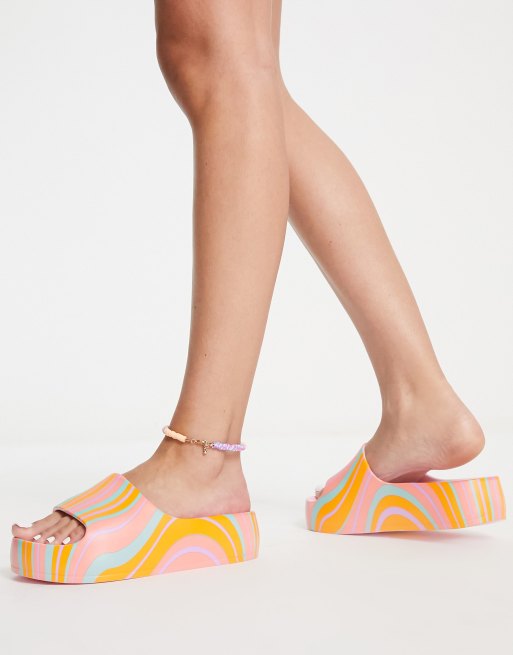Asos Design February Flatform One Piece Slides In Pastel Swirl Print Asos